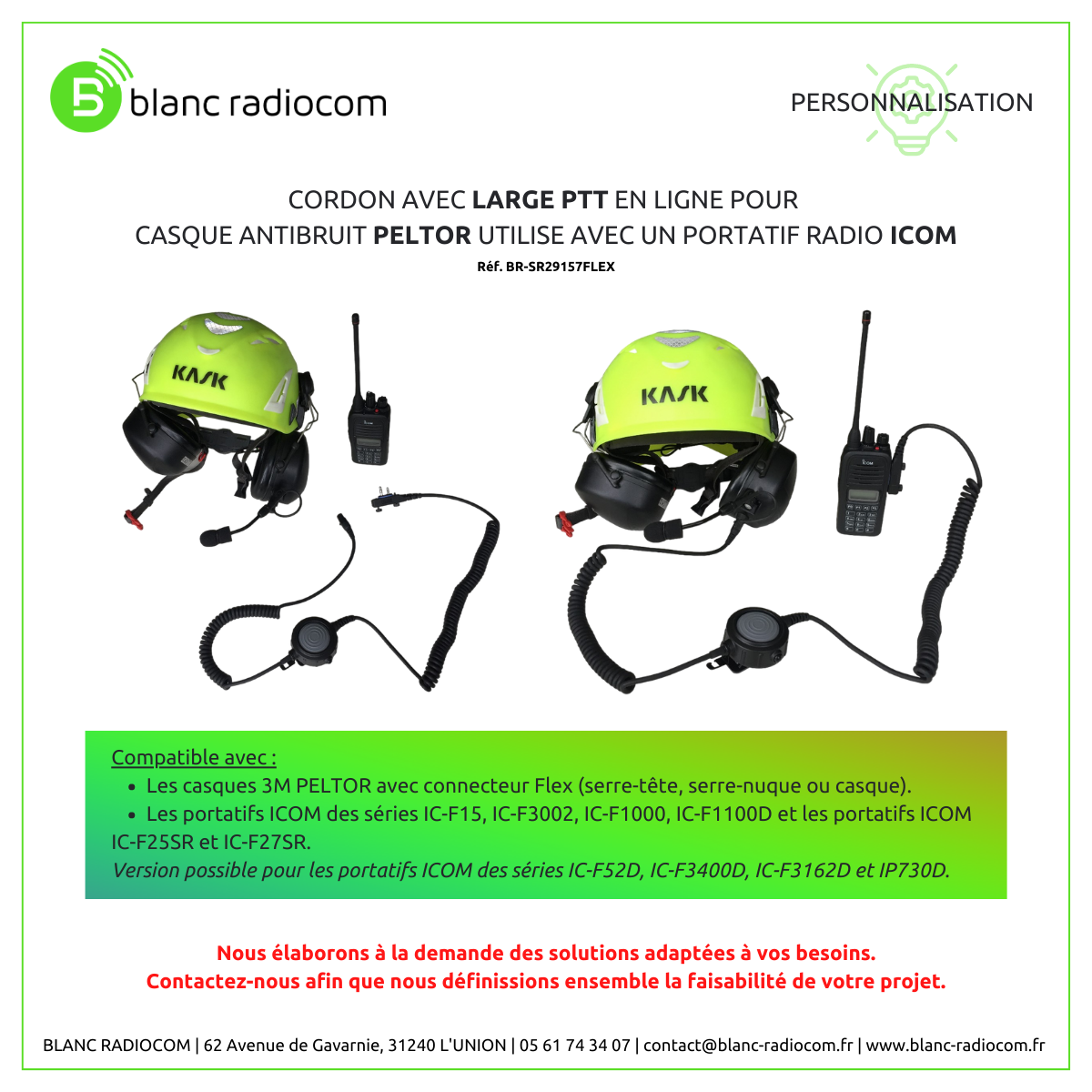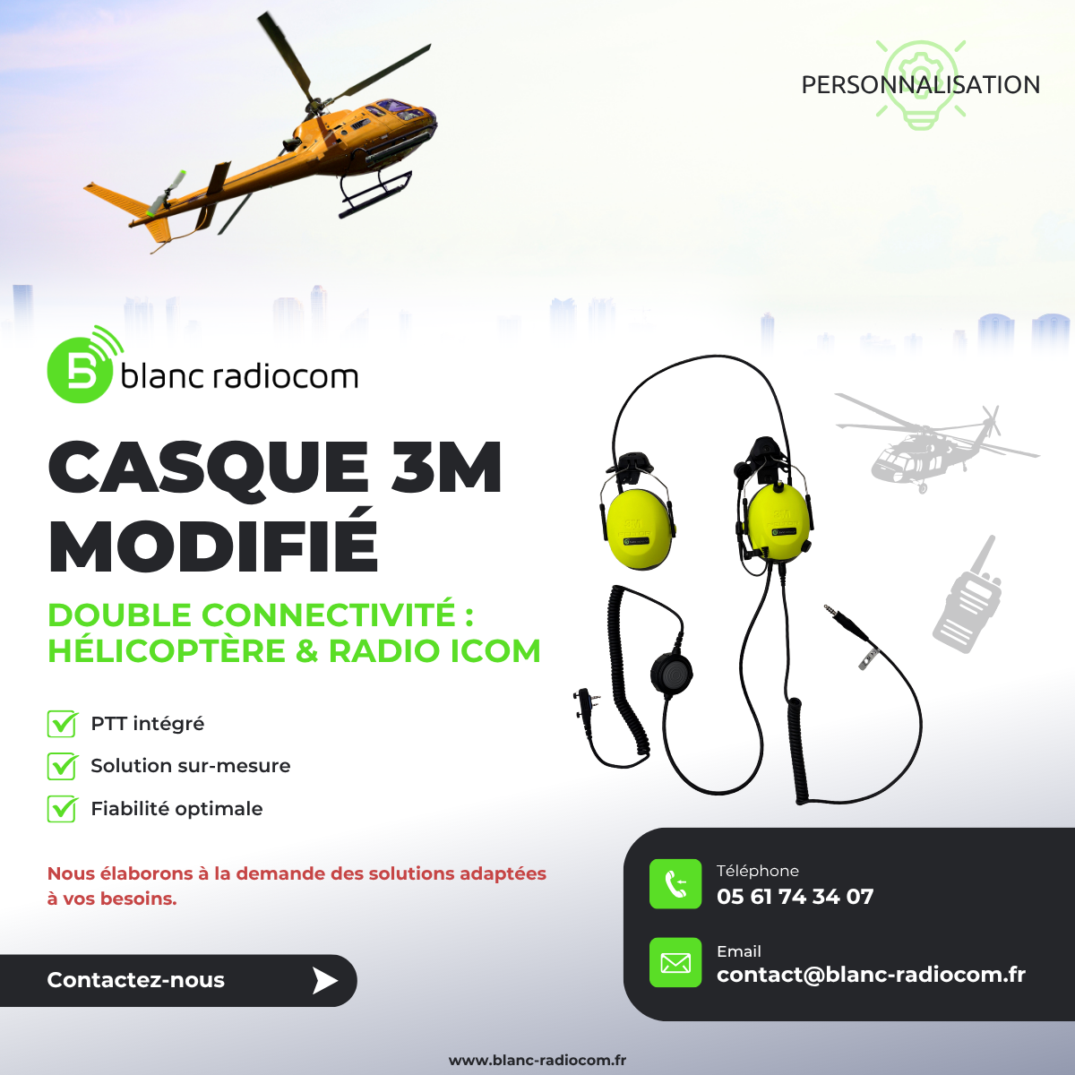 Casque 3M modifié : double connectivité hélicoptère et radio ICOM pour une communication optimale